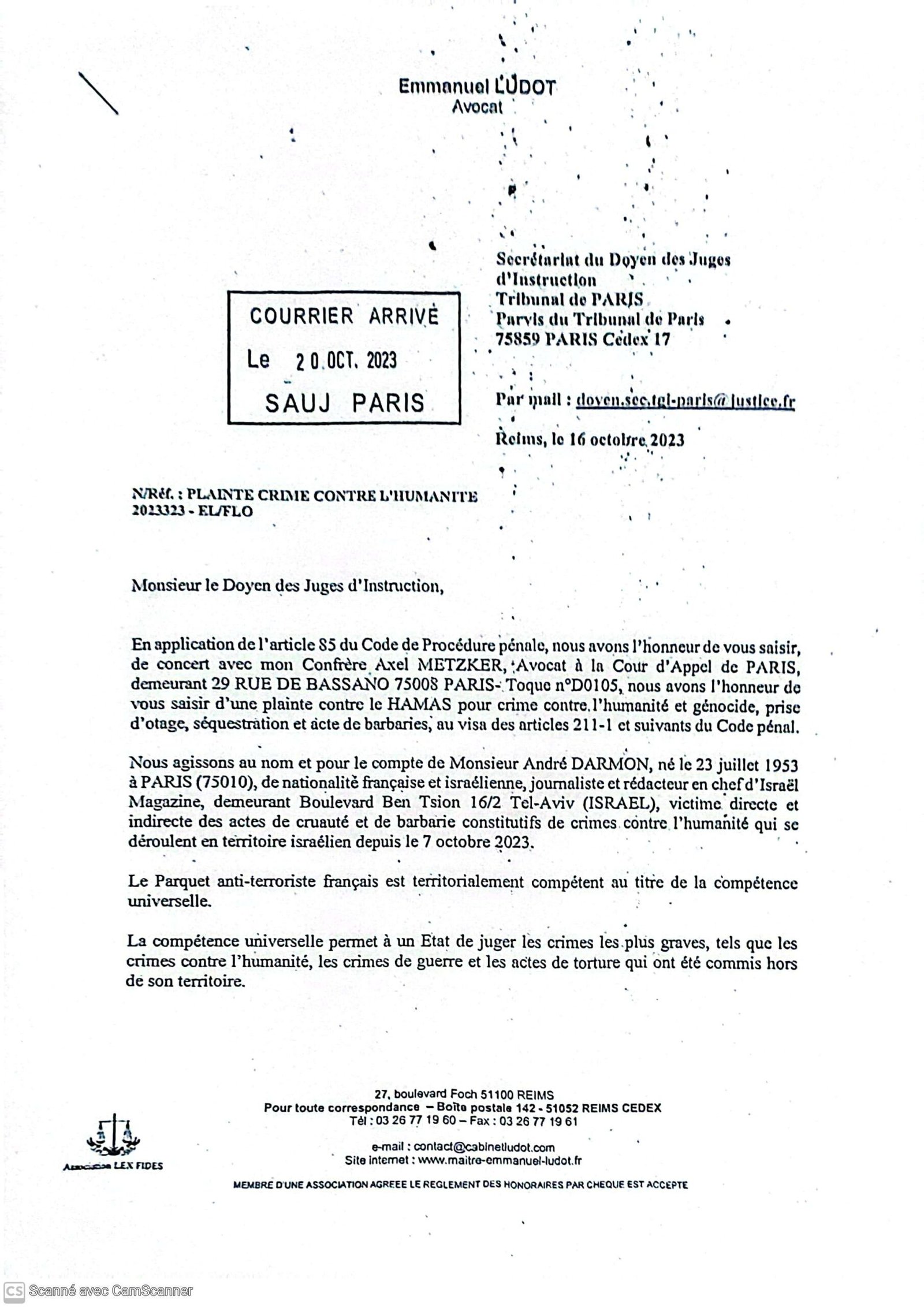 Emmanuel LUDOT Avocat Secrétariat du Doyen des Juges [...]
